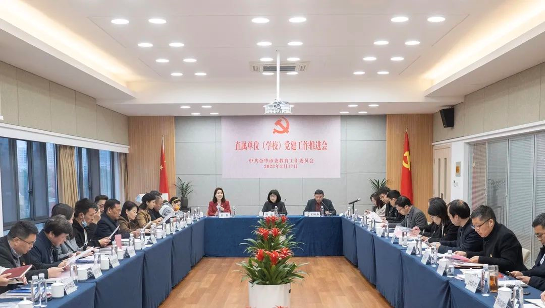 3月17日,市委教育工委在金华市君华学校召开直属单位(学校)党建工作推进会。市委教育工委专职副书记、市教育局党组副书记陈群出席会议并讲话。直属单位(学校)党组织书记、专职副书记参加会议。