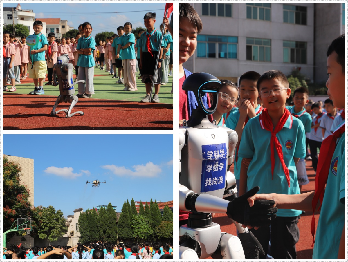 启动仪式上,智能机器人和机器狗与孩子们进行零距离互动;农用无人机以操场为“农田”,为孩子们演示了无人化、智能化灌溉、喷淋农药的工作场景……引起孩子们阵阵欢呼。